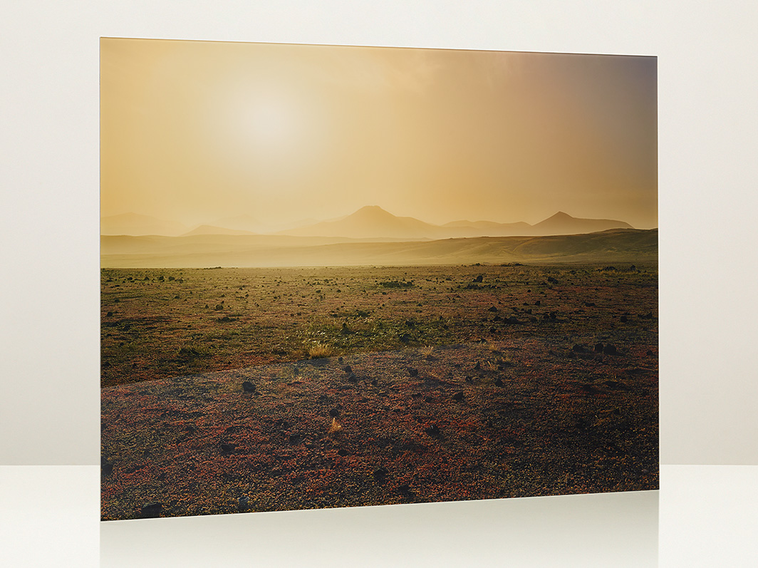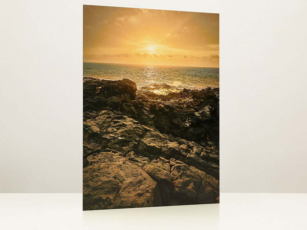 This genuine photo print is laminated on a Dibond aluminum panel and covered by a 2 mm layer of high-gloss plexiglass. A spacer on the back can be used to hang the print on a wall without a frame.