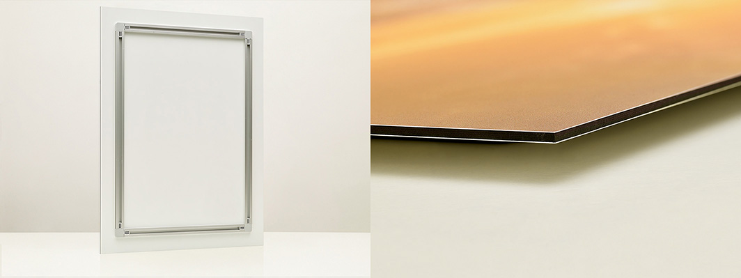 This is a direct UV print on a Dibond aluminum panel. A spacer on the back can be used to hang the print on a wall without a frame. Alu-Dibond direct prints can also be hung in e.g. the bathroom as long as they are not within a wooden frame.